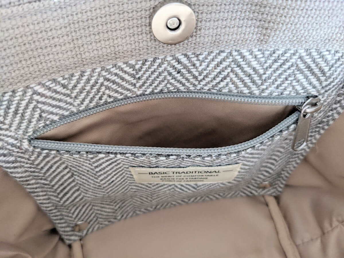 実はこの内ポケット、ただのポケットじゃないんです。 荷物が多くなってしまったときは、なんと目隠しの役割も果たしてくれる優れものなんですよ♪