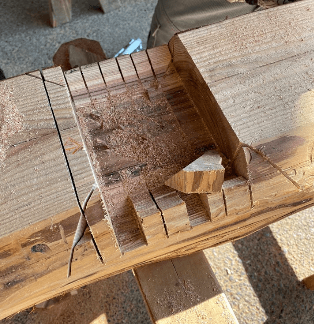 この作業、切り込みに沿ってスポッと木が外れていき、めちゃくちゃ気持ちが良い作業(笑)。ストレス発散になりましたよ!