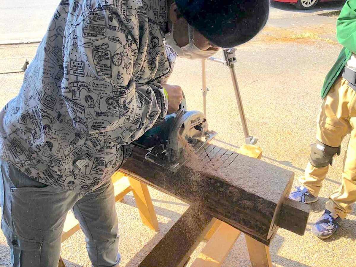 この作業も、ノコギリでは切れ目は入れられないところを、丸のこがスムーズに真っ直ぐに切ってくれるので、丸のこのありがたみさえ感じます。