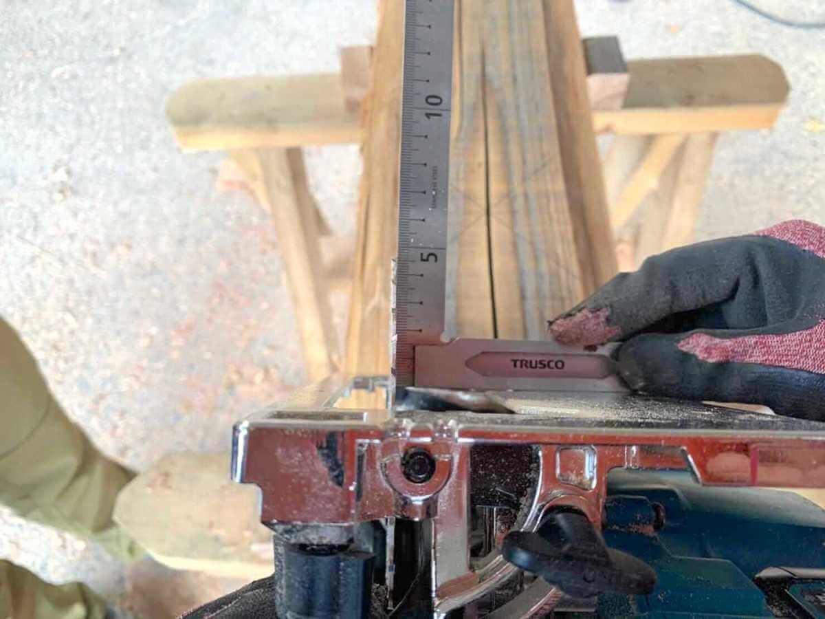まず、丸のこの刃の出を47mm(45mm+2mm)にセットします。