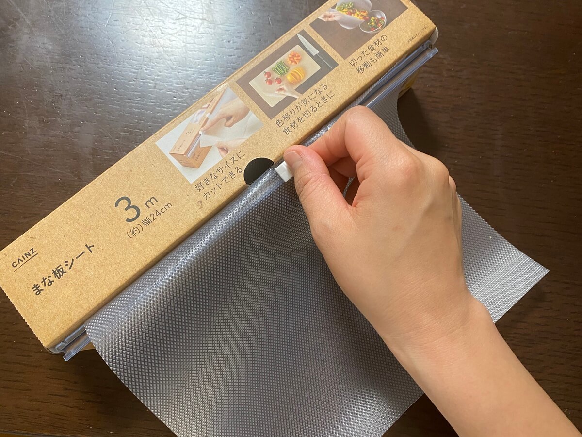 この「まな板シート」、ラップの要領と同じで、使いたい長さを好きなところでカットができるんです♪