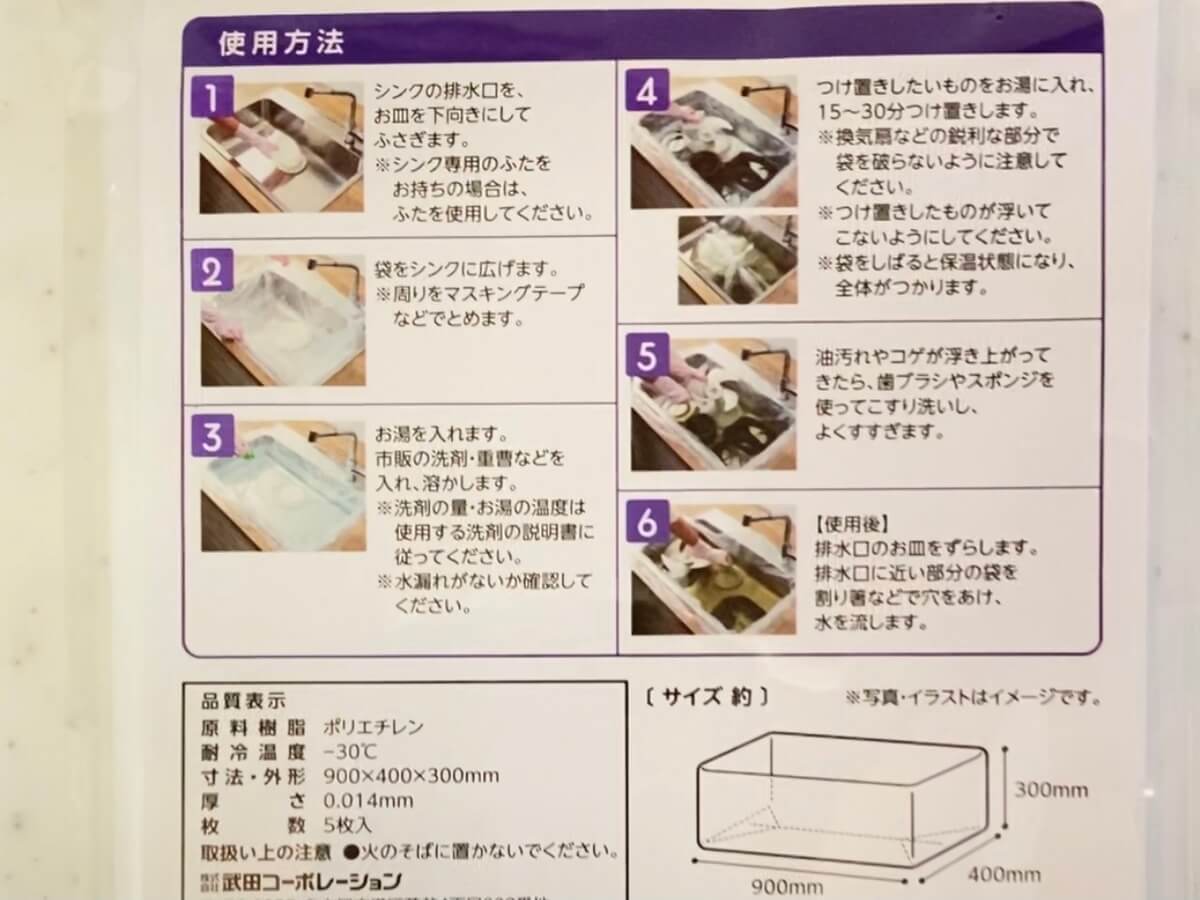 ダイソー「シンクを汚さず洗える!!つけ置き洗い袋 5枚入り 100円(税別)」
