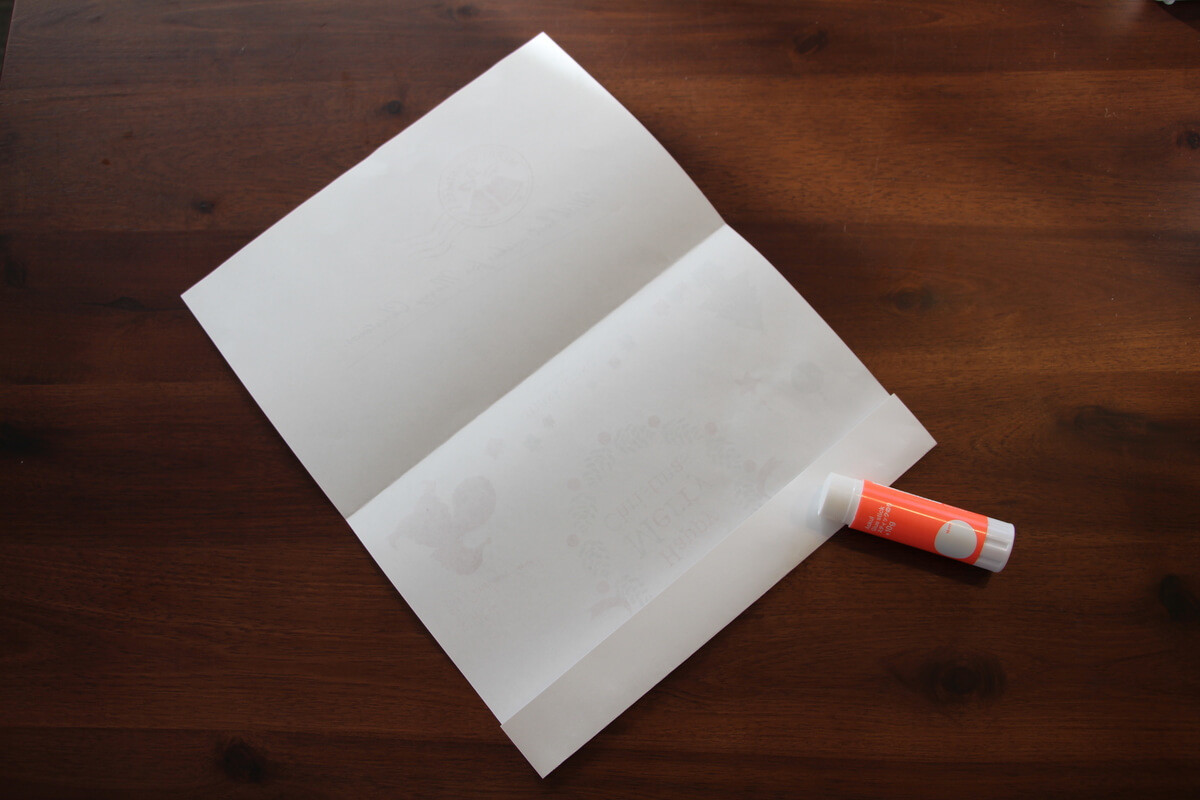 山折りした面にまんべんなくのり付けし、下部の辺を重ね合わせて貼ります。