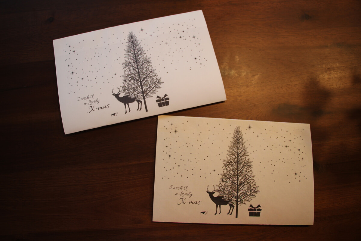 左上が白紙バージョン・右下がクラフト紙バージョンです。印刷する紙はどちらも白いA4用紙ですが、クラフト紙バージョンはまさにクラフト紙を使ったかのような、味が出ていますね。