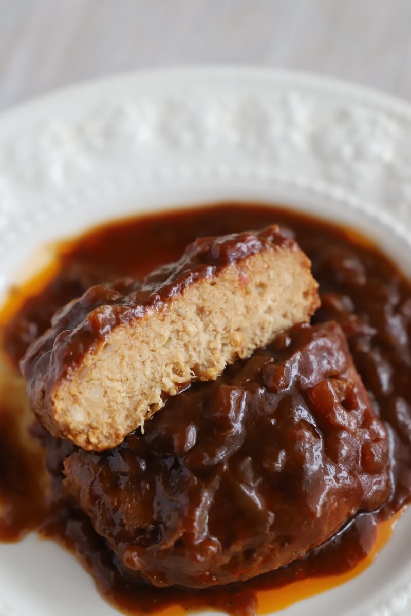 「大豆たん白から作ったまるでお肉のような大豆ミートのハンバーグです。食べ応えのあるしっかりとした食感でしっかりと満足できるように仕上げました」