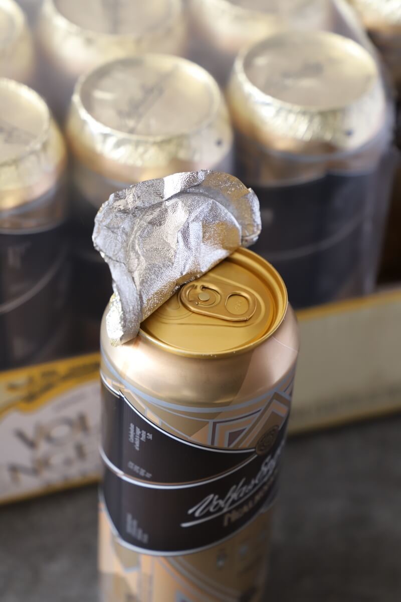 シックなデザインの缶に、金色のアルミがかぶせてあります。