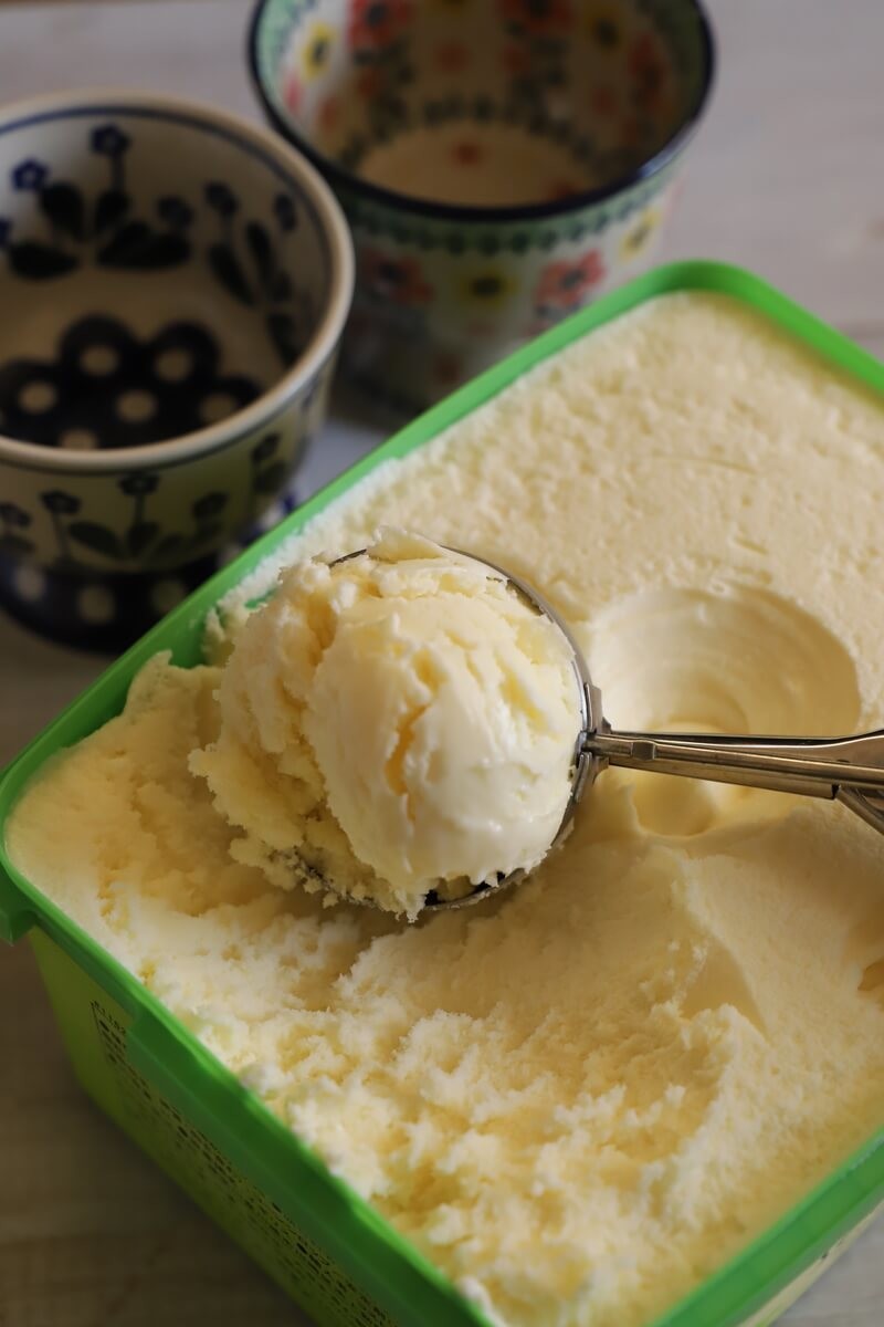 冷凍室から出して10分ほど。アイスクリームディッシャーですくうことができました。