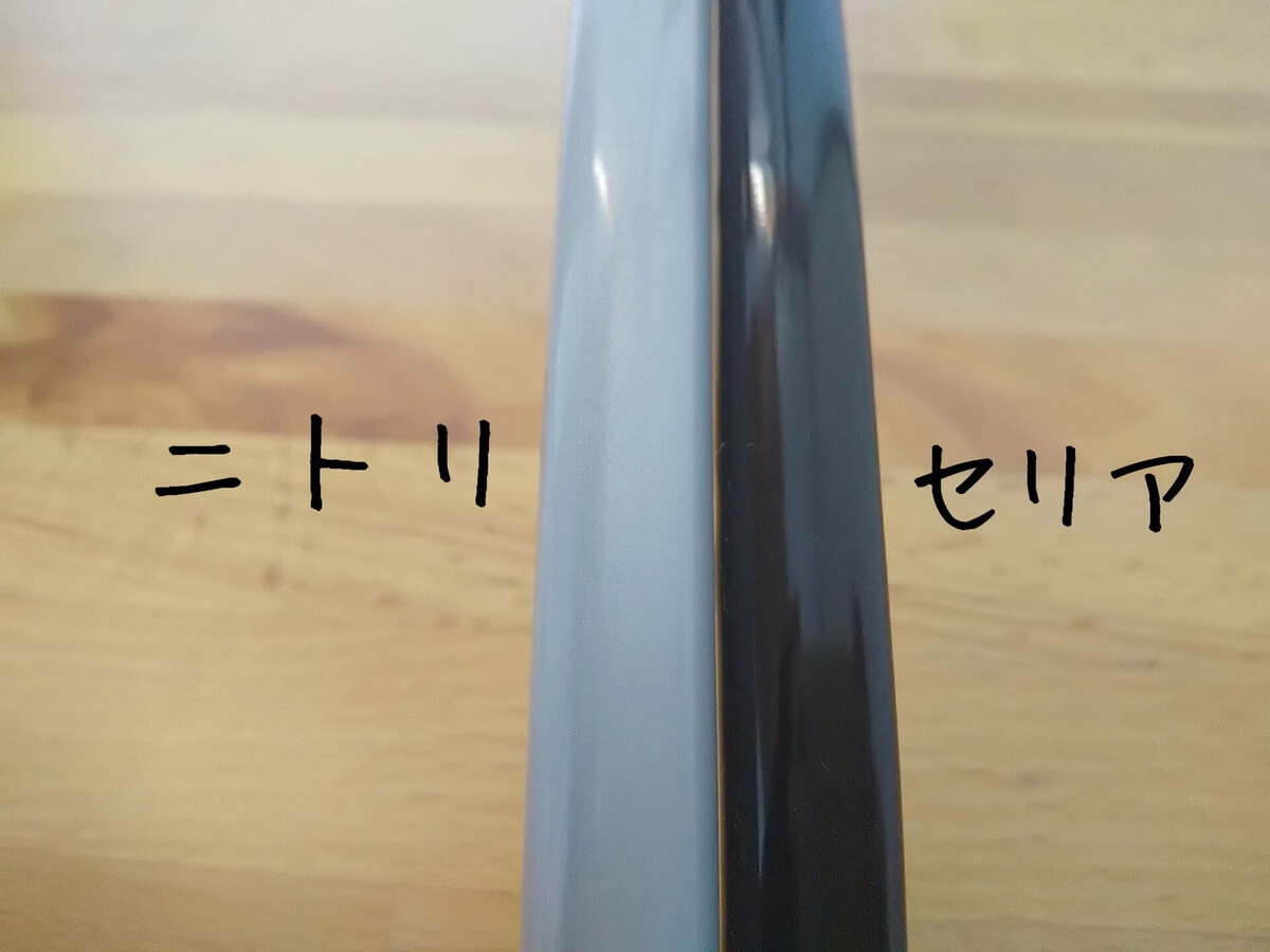 ニトリ版の方がほんの少し太く、その分重たさもあります。といっても、注意して比較しないと分からない程度。極端な違いは感じませんでした。