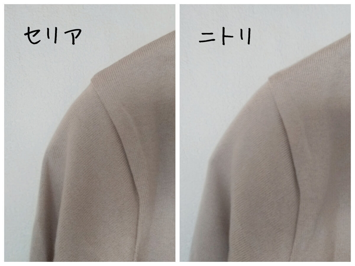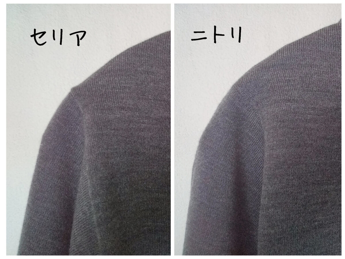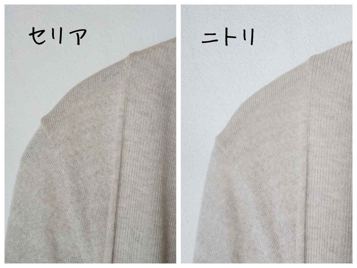 ハンガーのネック部は、ニトリ版の方が少し長め。 ボリュームあるタートルネックは、ニトリ版の方が使いやすそうです。
