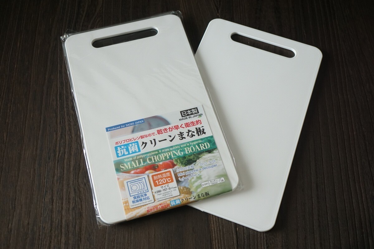 今までダイソーのまな板を何回か購入したことがありますが、まな板が薄いため食材が切りにくかったり、すぐ劣化してしまったりとあまり品質が良いと思わなかったので、まな板は100均では購入していませんでした。