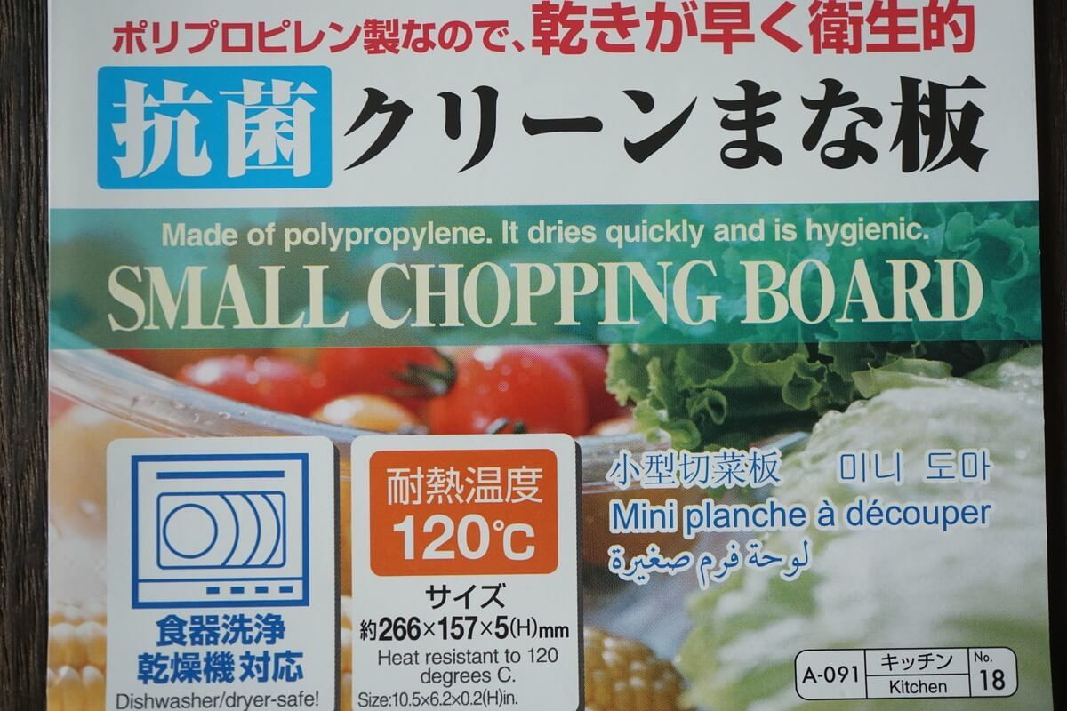 「日本製」「抗菌クリーンまな板」「食器洗浄乾燥機対応」「耐熱温度120℃」の文字に惹かれ手に取ってみると、サイズもまな板の厚みも申し分なし!