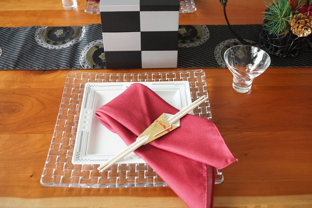 私は和のテーブルコーディネートをしたいときに、風呂敷をナプキン代わりに使用しています。