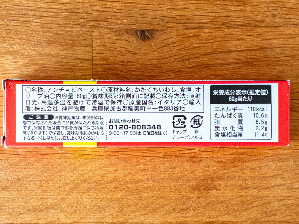 「アンチョビペースト(チューブ)」の 気になるお値段は、1本60g入りで195円(税抜)!