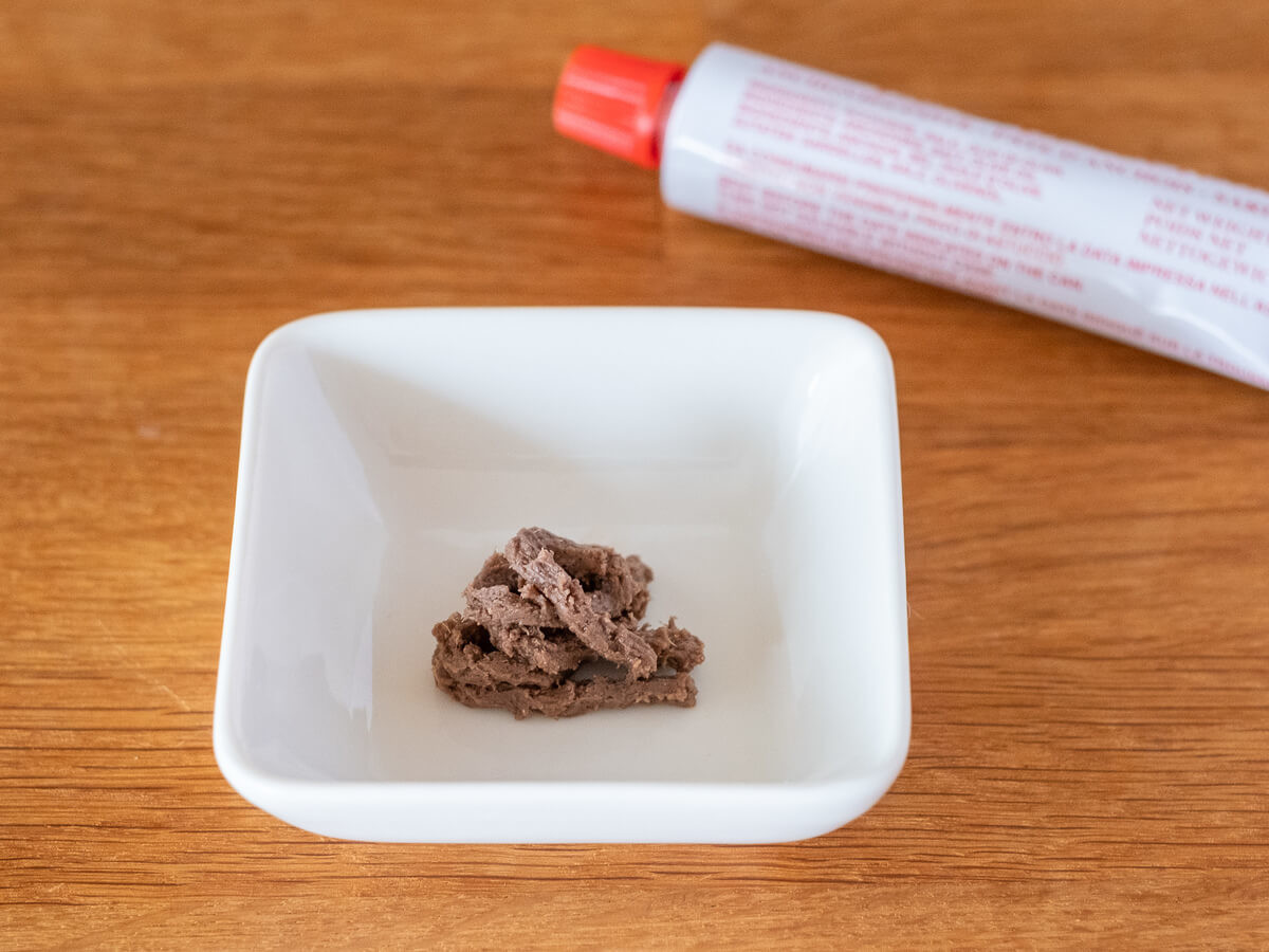チューブを開けて中身をお皿に出してみると、アンチョビの良い香りが♪