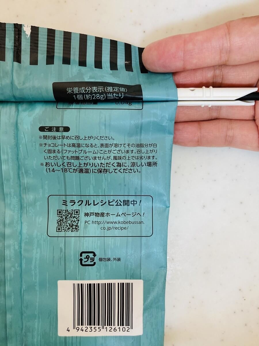 今回は、チョコレートのパッケージで試してみましょう。まずは上側を少し折り込みます。