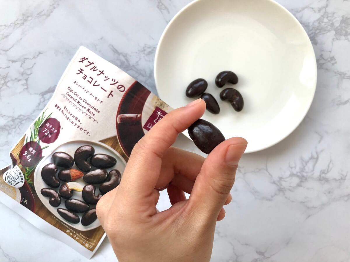 ゴロッと大きめのナッツに、深いカカオが香るチョコレートがしっかりとかかっています。