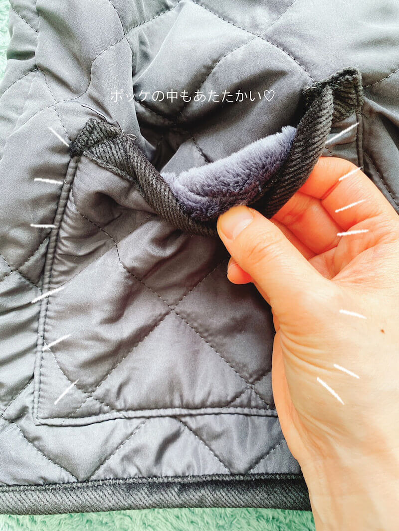 ちなみに、ポケットの中も同じ生地でめっちゃ温かい!!!