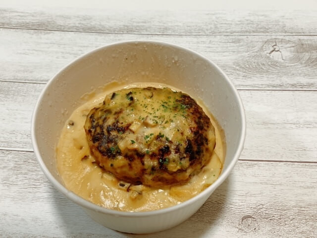 こちらのハンバーグは、よく食べる子供ばかりを育てている私の感覚だと、ご飯とサラダとみそ汁を自前でつけると、私の1人前としては少し量が多く、子供と半分ずつだと少し足りない感じがしました。