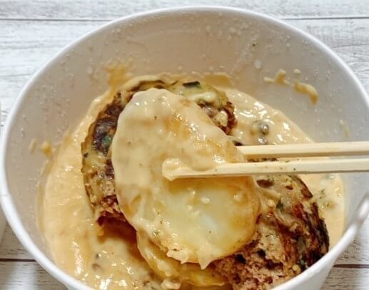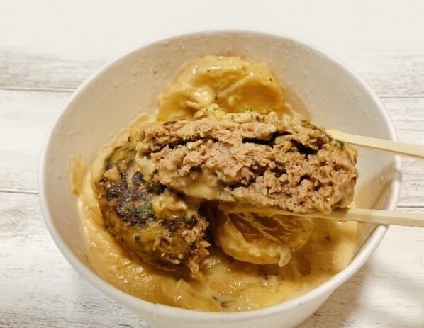 はしでわってみると、しっかりとした厚みのあるハンバーグで驚きました。これは何度か食べたい1品。