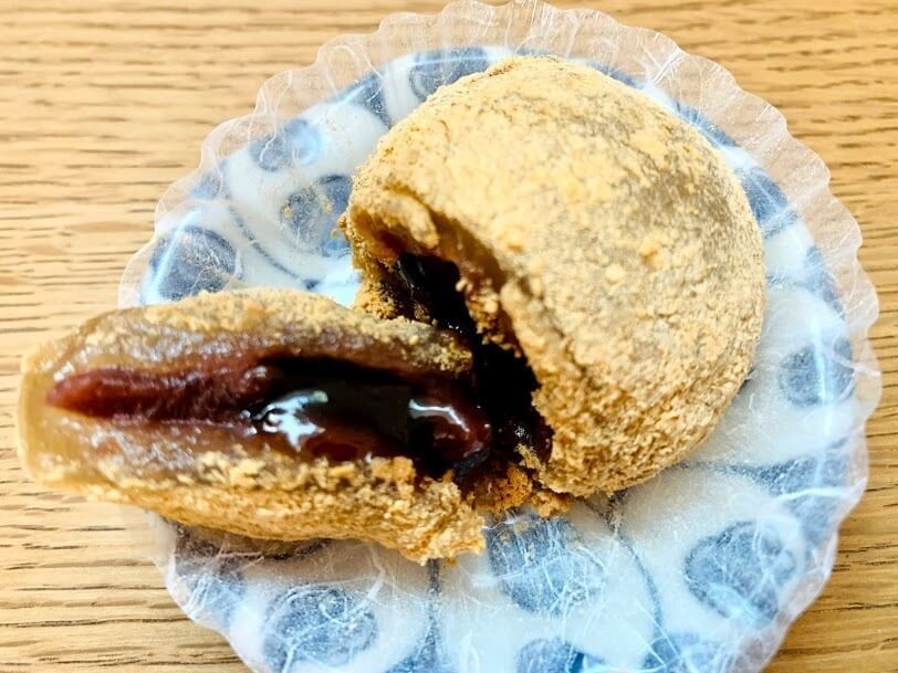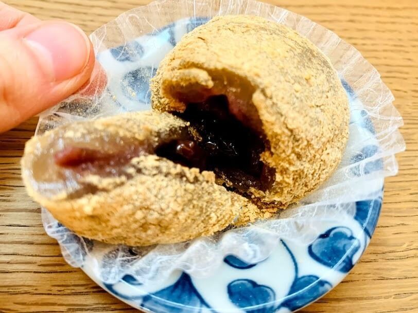 こしあんと黒蜜をわらび餅で包んでいるなんて、和菓子の贅沢詰め込みました!みたいな感じですね。