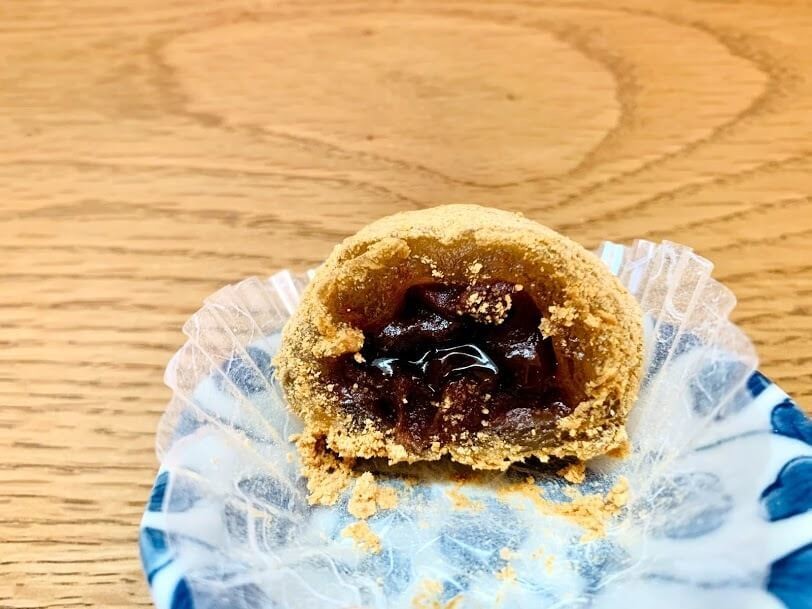 きな粉たっぷり。開けるとまずきな粉の香ばしい香りがふわ~っと香ります。