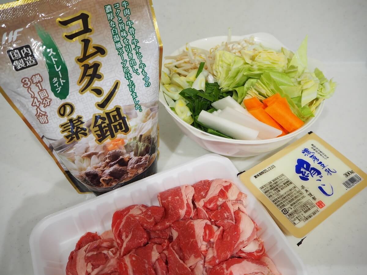 今回鍋に入れる具材は、パッケージを参考に以下を準備しました。
