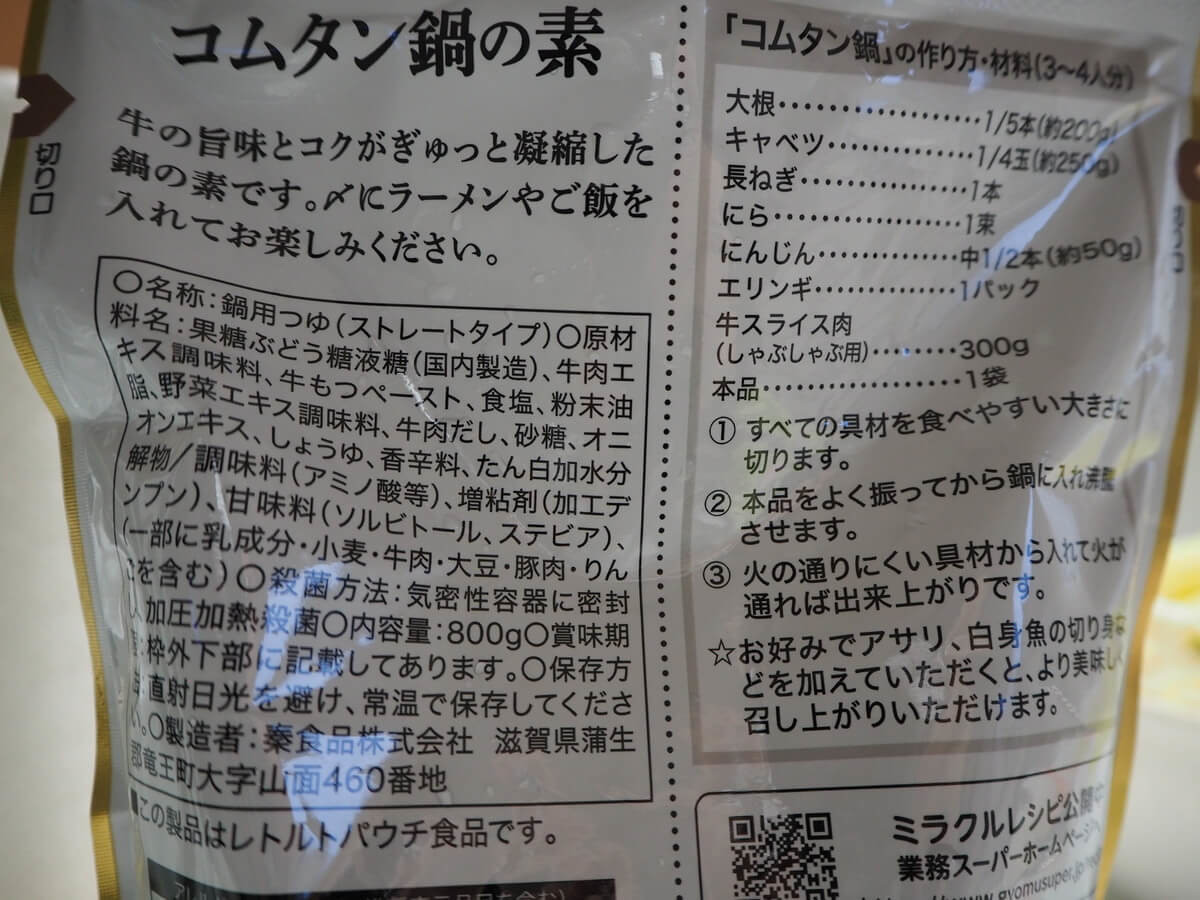 毎年いろいろな鍋の素が登場していますが、業務スーパーにも季節の新商品として「コムタン鍋の素」が登場。