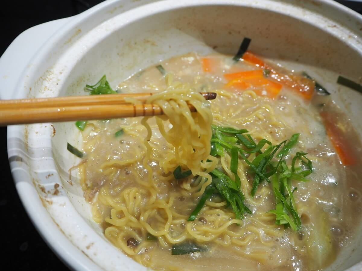 スープに溶け込んだ具材の旨味を吸った濃厚なラーメンは、寝起きの体も温まる最高な味でした。