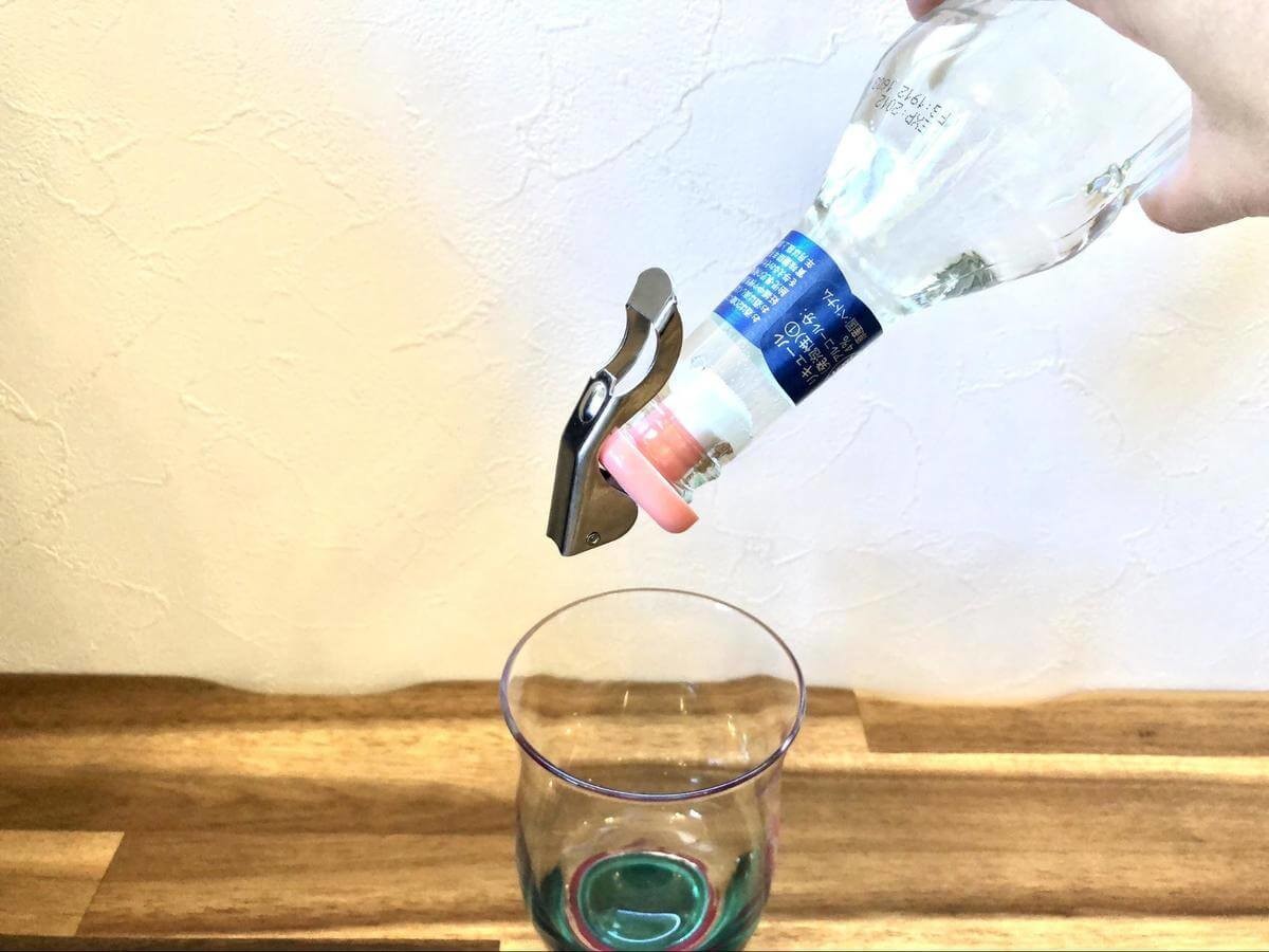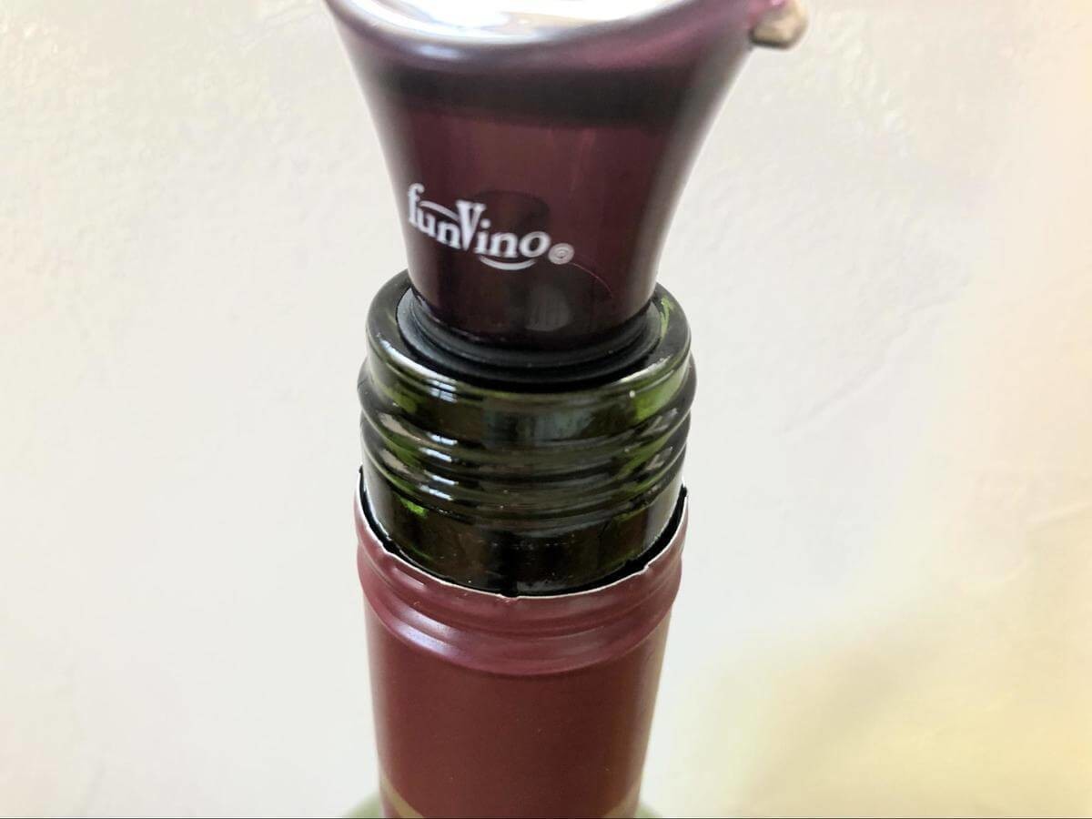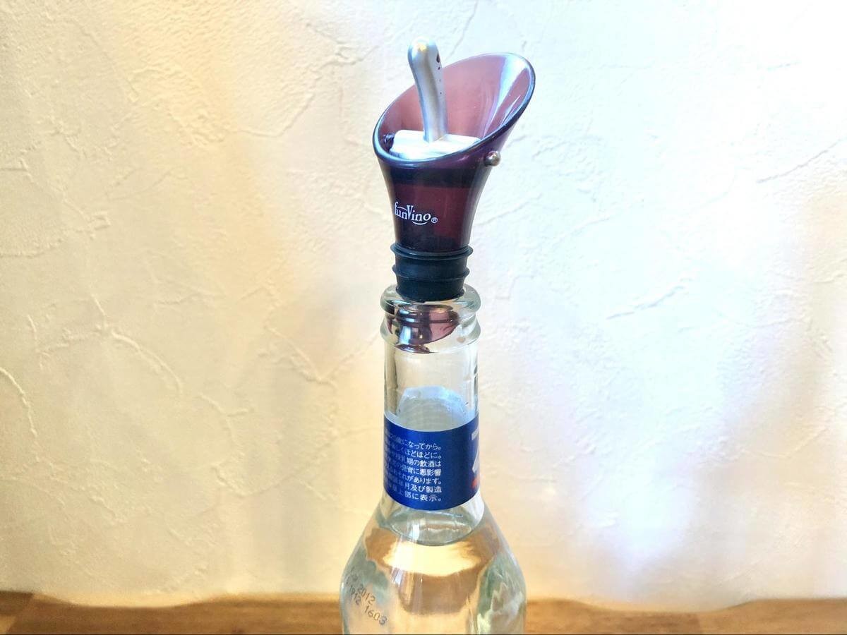 シリコン部分が瓶の口と同じ高さになるまで瓶に差し込めば完了です。