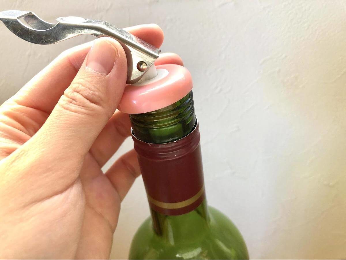 そうして見つけたのが、この「栓抜き付きボトルキャップ」です。こちらもワインストッパー同様、シリコンで密閉します。