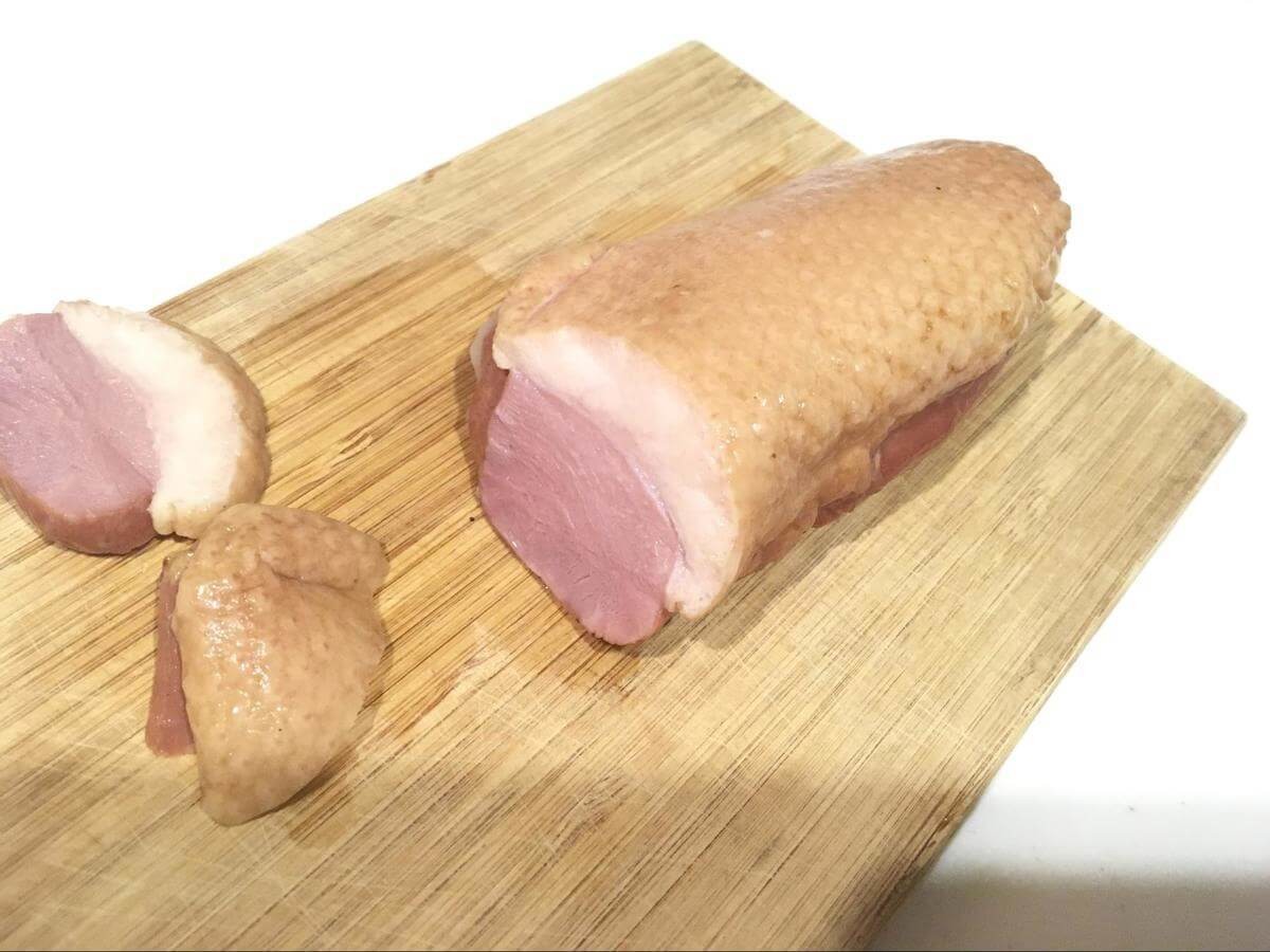 加熱した合鴨ロースは脂部分が舌で溶けるほど柔らかに変化!