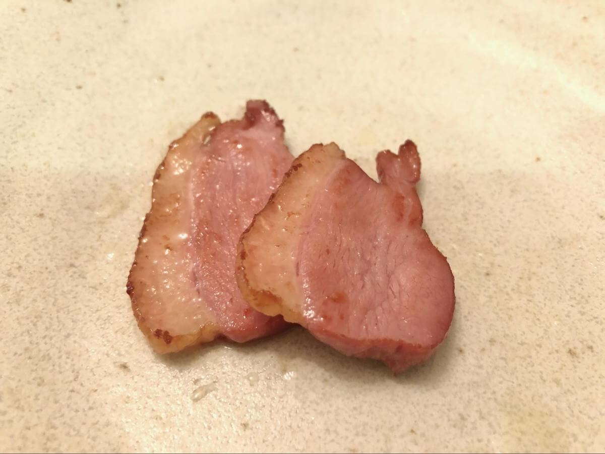 合鴨ロースの価格によからぬ疑いを持っていた夫も、「すっごく柔らかいベーコンみたい」と満足げな感想。