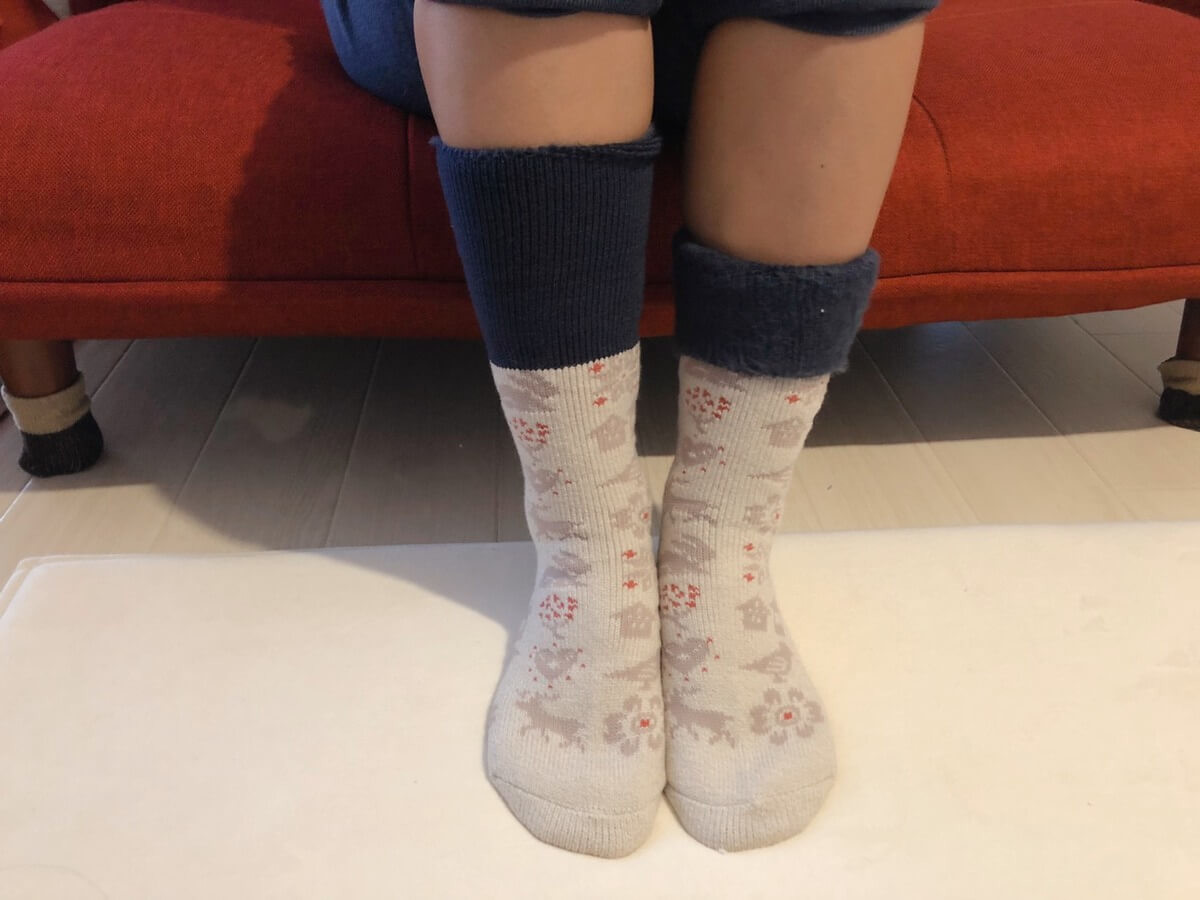 このソックス、めちゃくちゃ暖かいです。冬でも天気の良い日に履くと足に汗をかいちゃうくらいポカポカ。