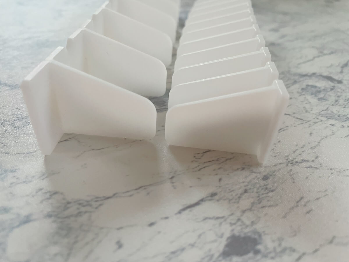 スタンドの仕切り部分は、上が斜めで下が平らになっています。貼り付ける際は上下を間違わないようにお気をつけください。