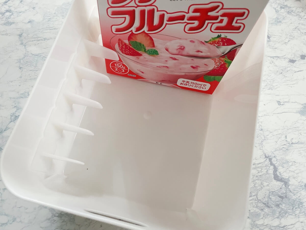 今回のスタンドを取り付ける容器は、ダイソーのフルーチェを入れると少し余裕が入る容器を選びました。