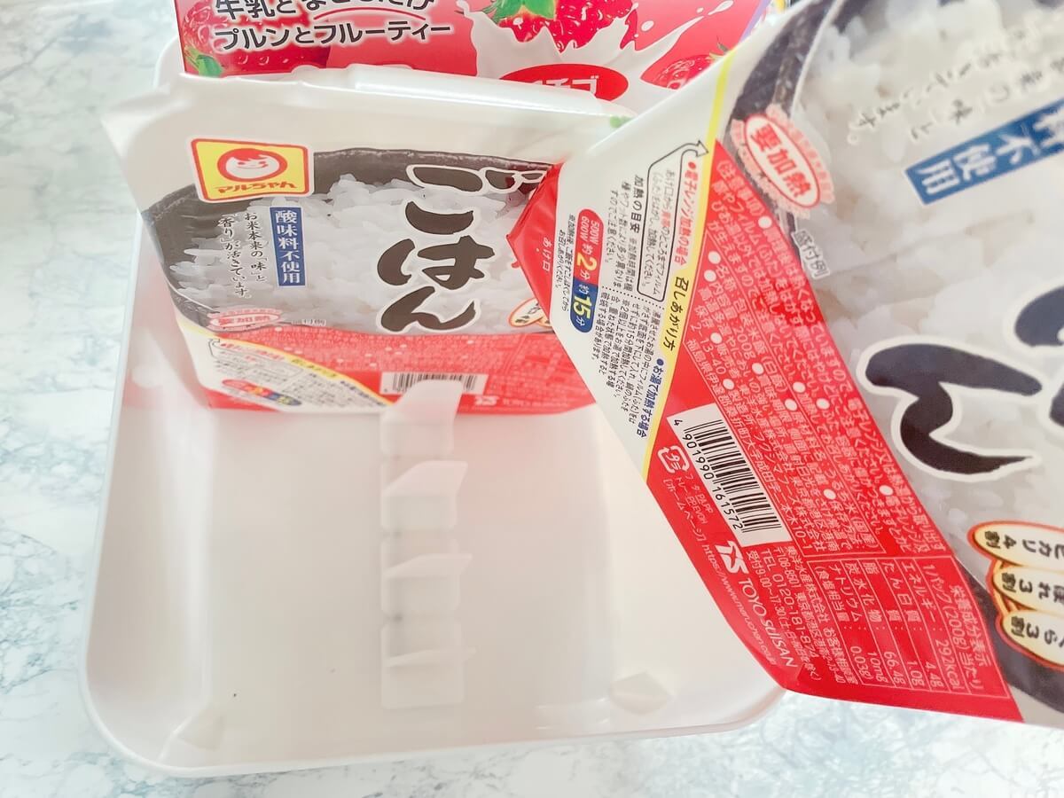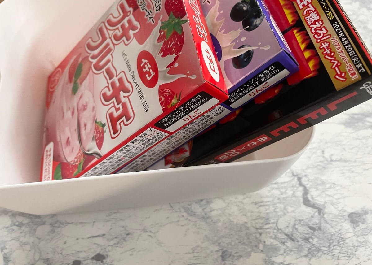 ダイソーのフルーチェはもちろんですが、我が家にあったレトルト食品も問題なく収まりました。