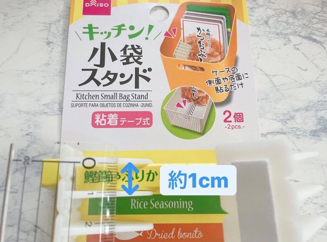 小袋スタンドの仕切り部分の幅は、約1cmです。