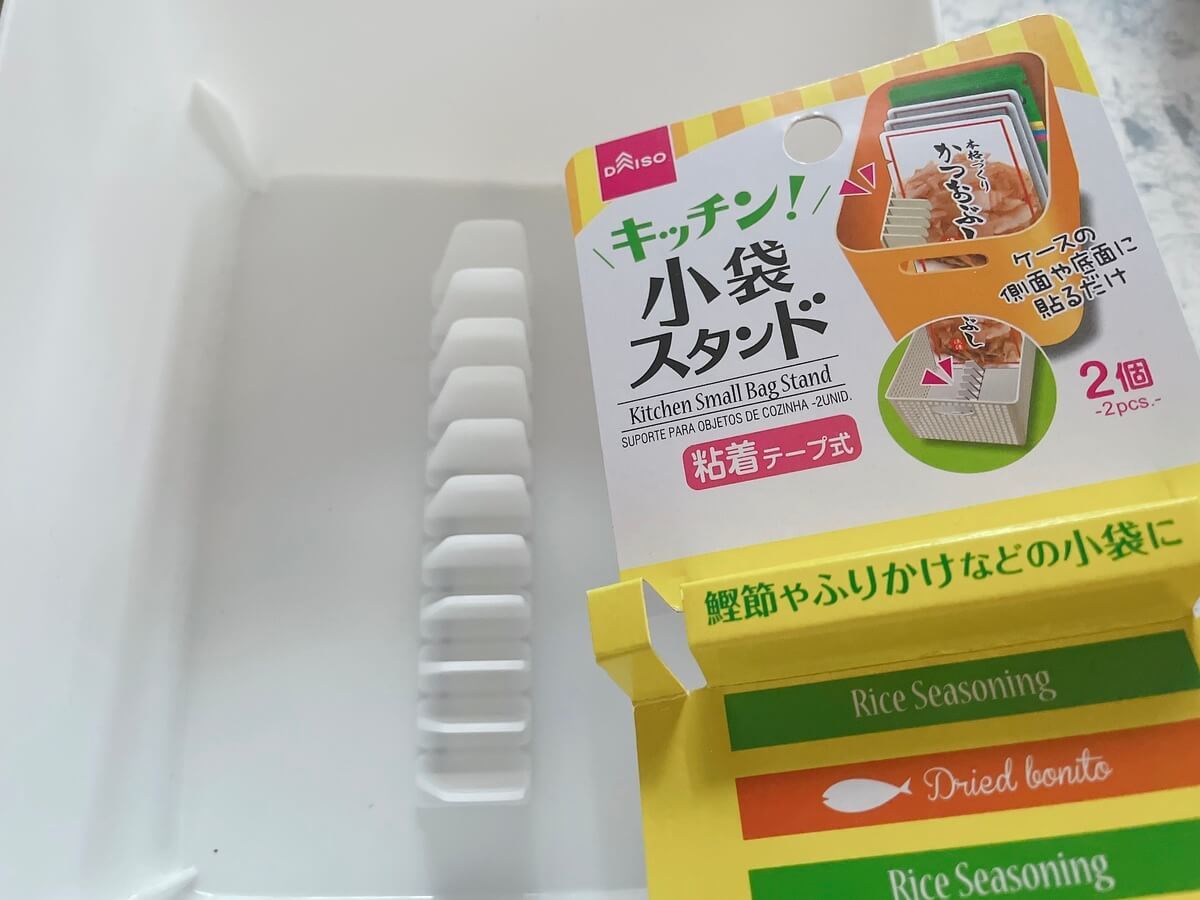 そこで、ダイソーの公式インスタグラムで発見した整理整頓アイテム「キッチンレトルトスタンド」「キッチン小袋スタンド」各100円を早速購入して試してみました。