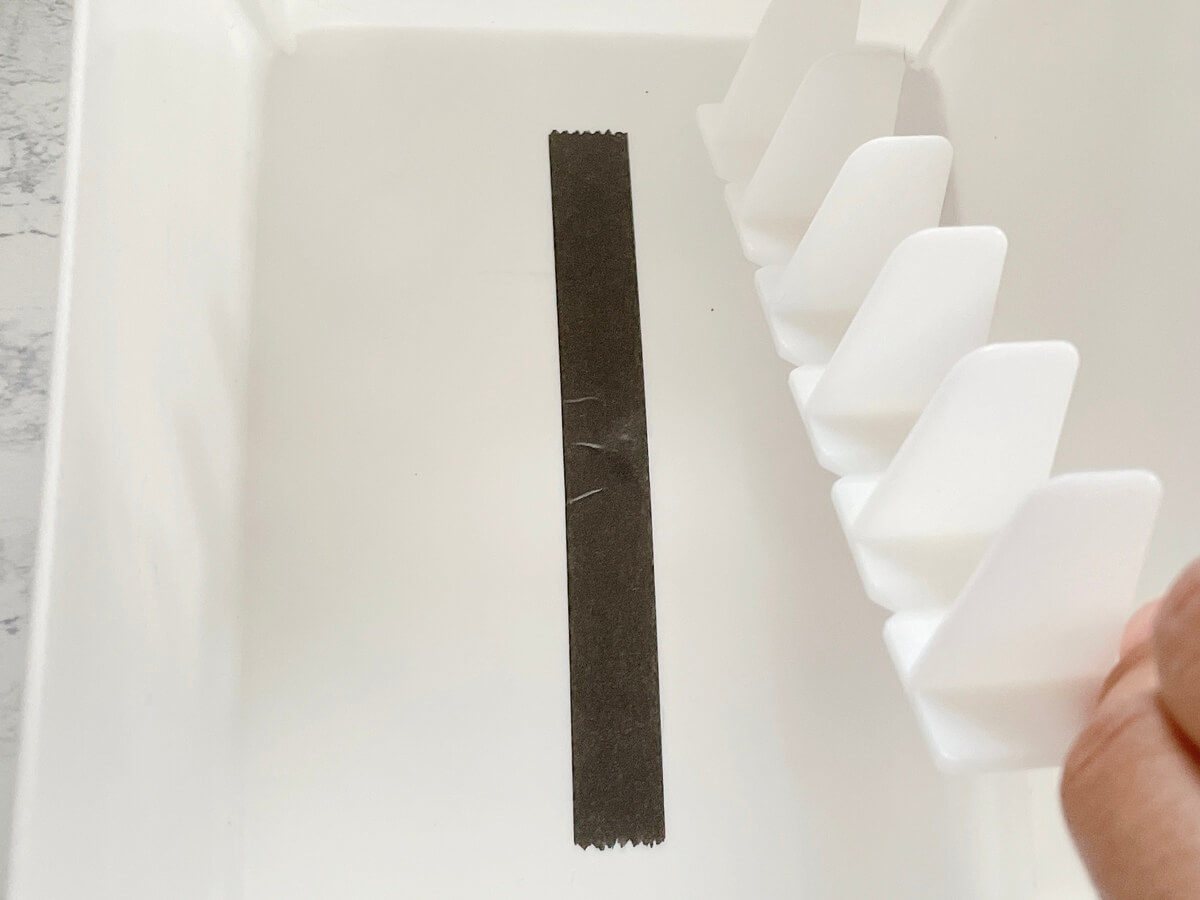 私はスタンドの粘着面がべっとりと容器に付くのが嫌なのでマスキングテープをあらかじめ容器に貼り、その上にスタンドを取り付けました。