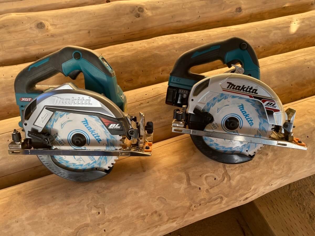 まずは、ホームセンターでもレンタルしていることが多い「丸ノコ」についてです。今回の家づくりの作業でも一番使用頻度が多く、もはや“丸太加工の相棒”といえるでしょう。