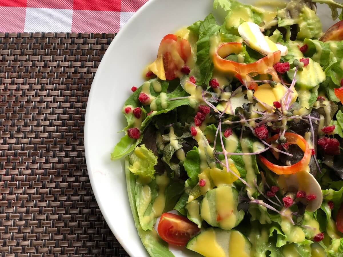 そしてなんといってもマンゴーの甘さと酸味のバランスが最高です!サラダが一気にフルーティになり、ご飯がすすむ」ならぬ「サラダがすすむ」でした。