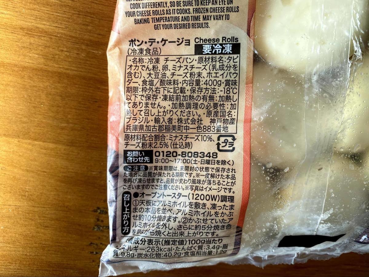 原材料名のトップに買いてあるのがなんと「タピオカでん粉」ポンデケージョは小麦粉ではなきくタピオカ粉を使ったパンなんです。