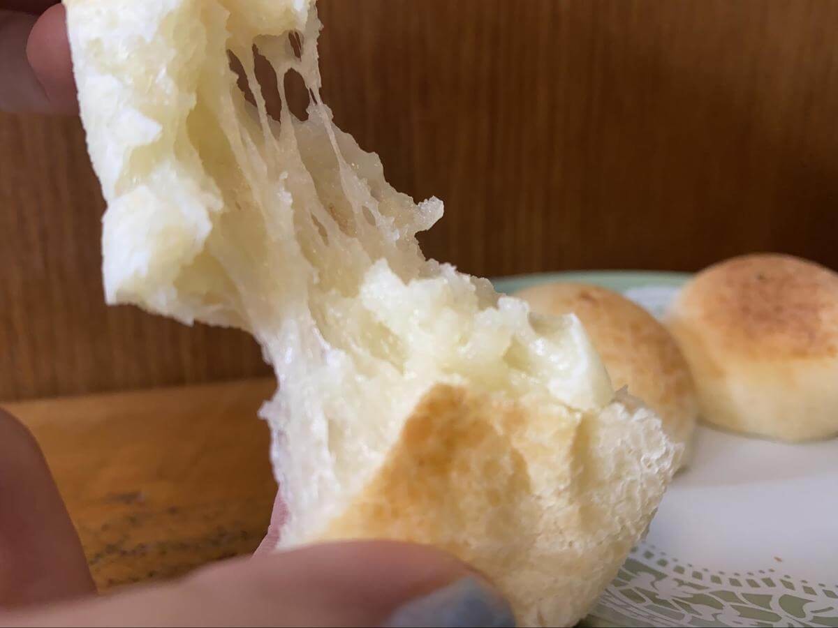 もちもちとしていて、まるでパンとは思えないほど。ポンデリングの食感に近いかもしれません。