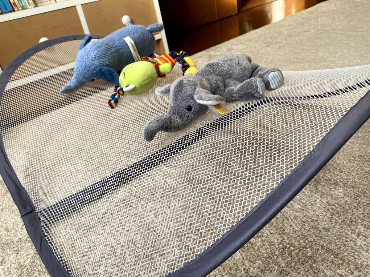 こんな感じで子どものぬいぐるみを並べて天日干しするときにも役立ちます。