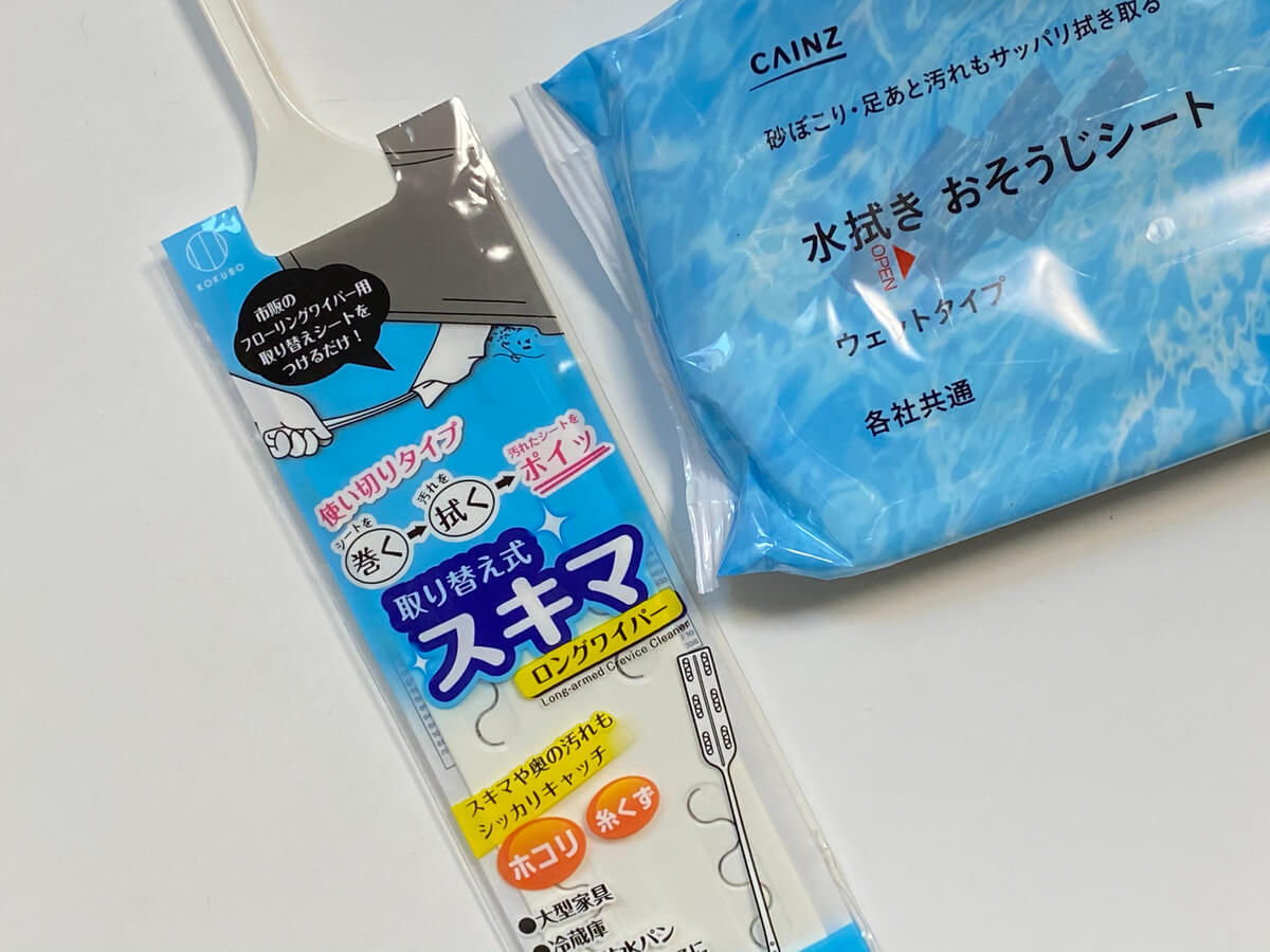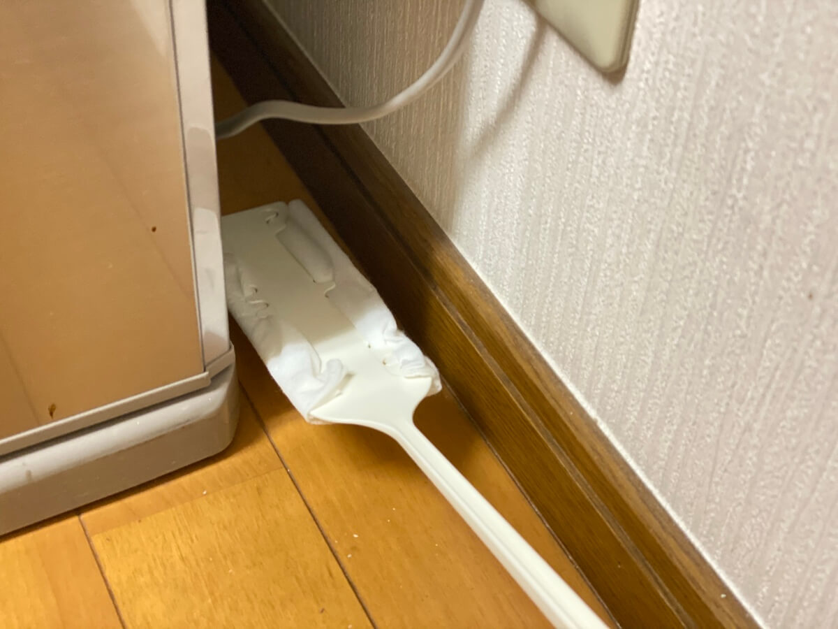 私は、床に近い場所(冷蔵庫の下やテレビ台の下など)はウエットタイプ、その他の場所はドライタイプと、使い分けて掃除しました。