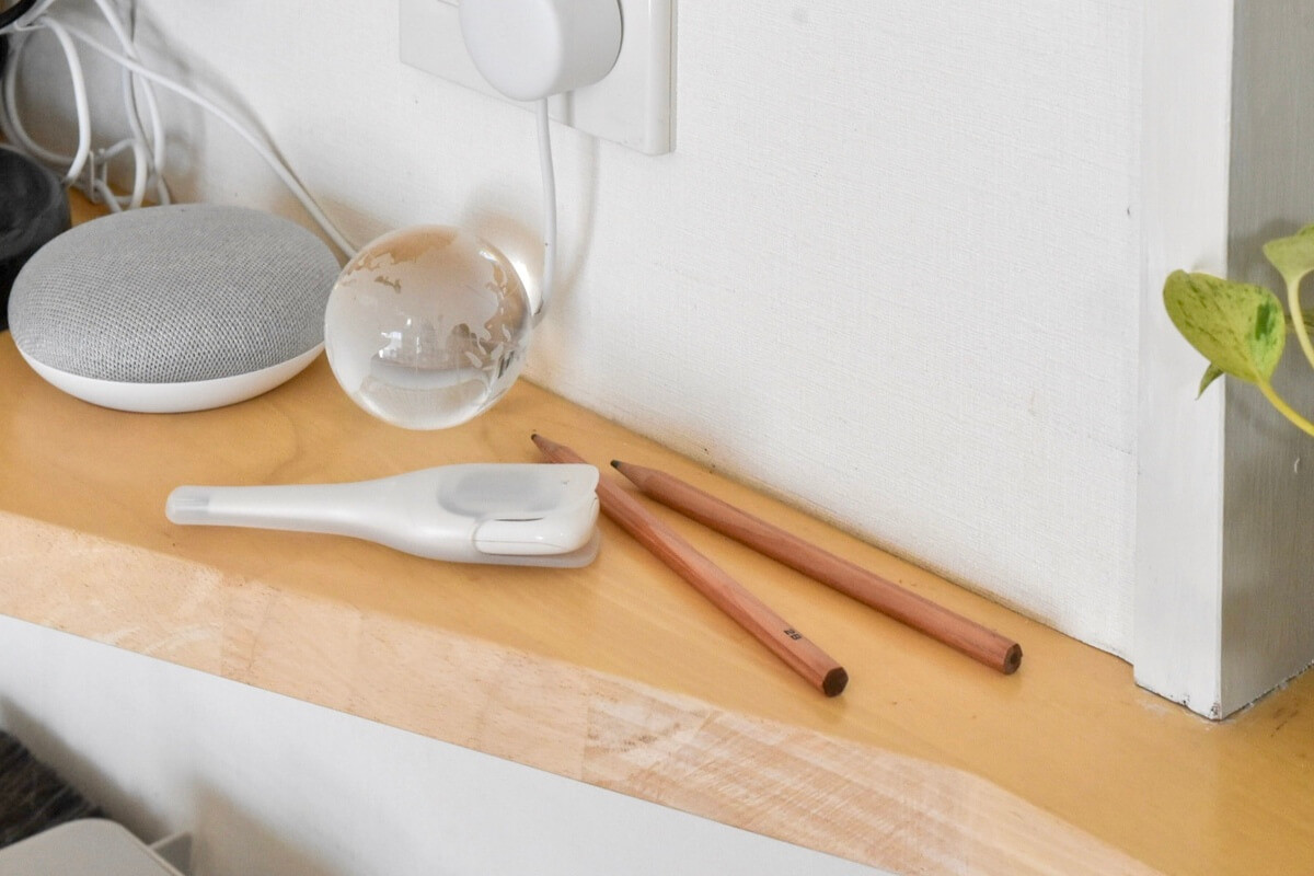 体温計はキャビネットの中に収納していたのですが、毎朝子どもたちが使った後この場所に置きっぱなしになっていたので、使う場所に収納を作りました。