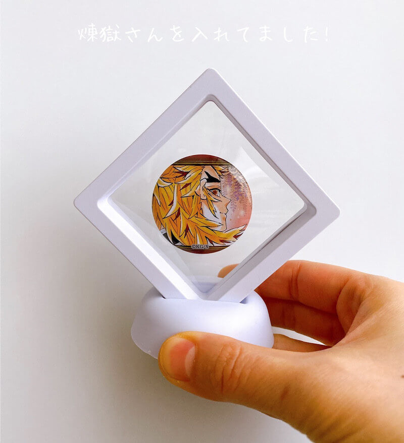 「鬼滅の刃」缶バッジはセリアのカバー×ネイルディスプレイスタンドに収納