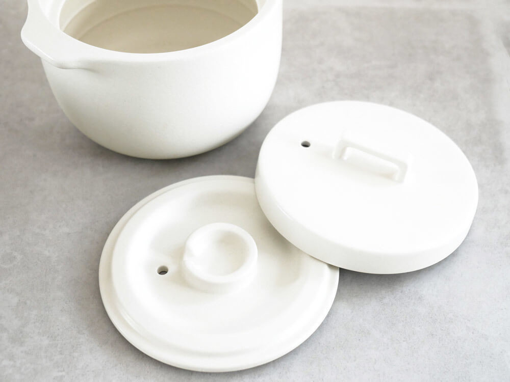 「KAKOMI 炊飯土鍋」には、炊きムラも吹きこぼれも防ぐ二重蓋つき。