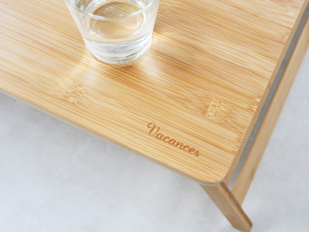 脚を畳めばコンパクトになり、上質な竹で作られたインテリア性の高い折り畳みテーブル「Vacances バンブーテーブル」。