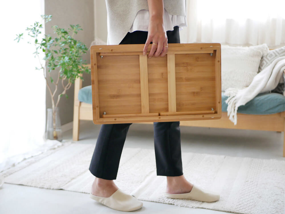 椅子からくつろぎのフラットな「床座生活」へ!上質な竹で作られたバンブーテーブルの魅力